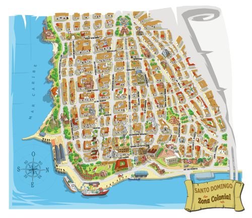 Mapa en 3D de la Zona Colonial en el que se dibujan cada calle, edificio y monumento de interés.